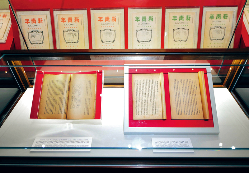 中国共产党为什么能,中国特色社会主义为什么好,归根到底是因为马克思主义行。图为2021年6月26日在北大红楼拍摄的刊登李大钊《布尔什维主义的胜利》、《我的马克思主义观》的《新青年》5卷5号(右)、6卷5号(左)原件。新华社记者 谢晗/摄