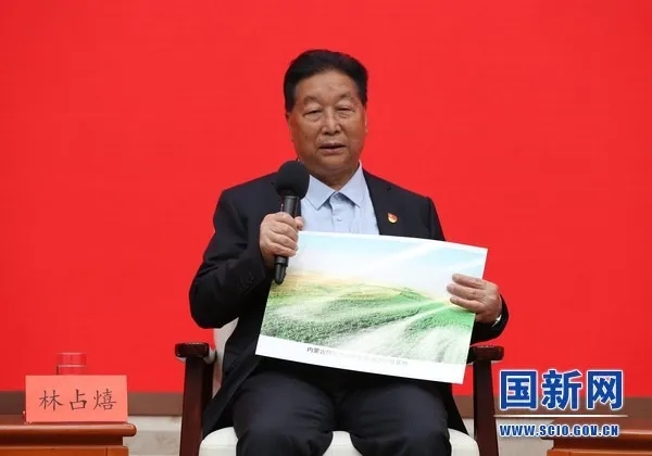 今年6月8日,中宣部举行中外记者见面会,4位脱贫攻坚领域党员代表与记者见面交流,林占熺就是其中一位。林占熺展示了乌兰布和菌草防风治沙基地的照片,并表示,要在黄河两岸筑起千里菌草生态安全屏障。