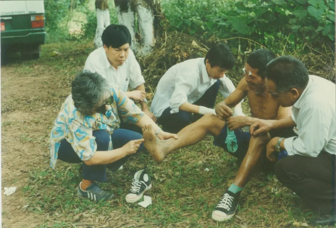 以前,医务人员在面对麻风病患者时,往往穿得像个“防化兵”:白大褂、白手套、帽子、口罩、鞋套全副武装,整个人只能看见两只眼睛。放药的桌子隔着患者1米远,医务人员用棍子把药推到患者面前……