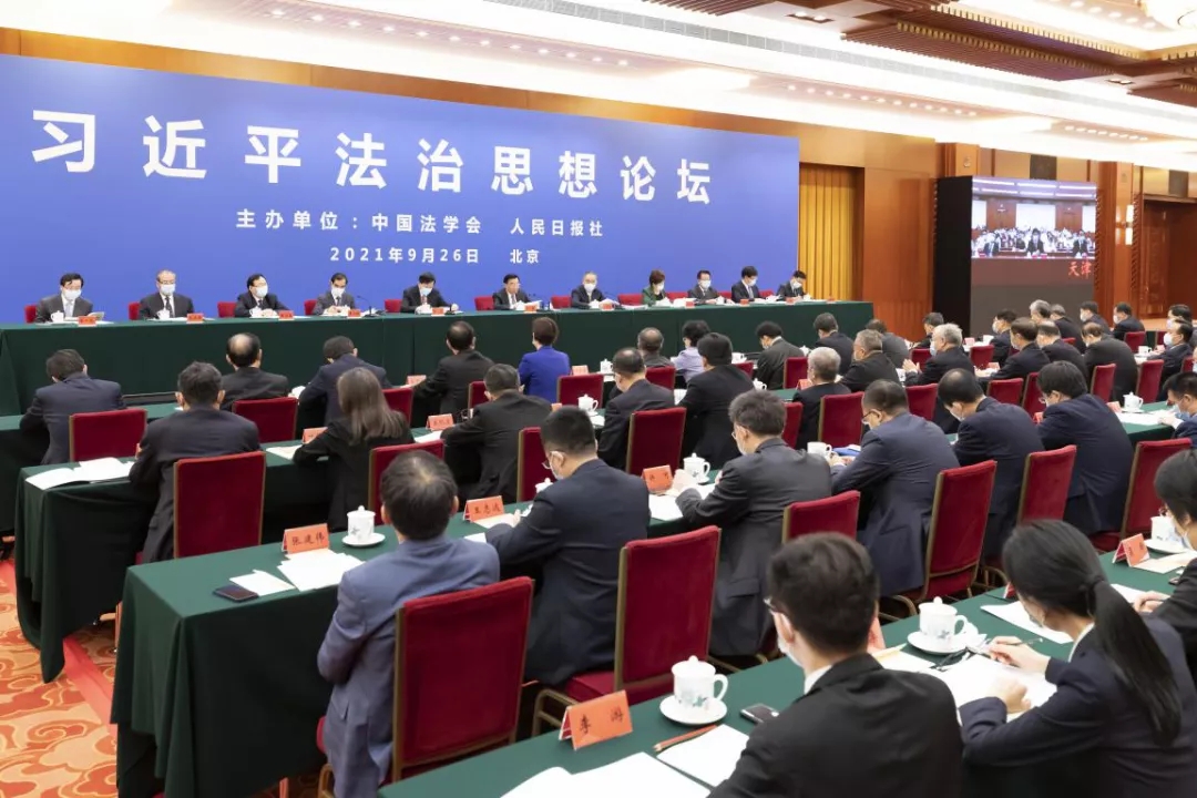 2021年9月26日,由中国法学会和人民日报社联合主办的习近平法治思想论坛在京举行。论坛以“坚定不移走中国特色社会主义法治道路,为全面建成社会主义现代化强国而努力奋斗”为主题,旨在推动社会各界特别是法学法律界认真学习、深入研究、扎实宣传习近平法治思想,自觉用习近平法治思想武装头脑、指导实践、推动工作,谱写新时代全面依法治国新篇章。 《民主与法制》社记者 戎珊/摄
