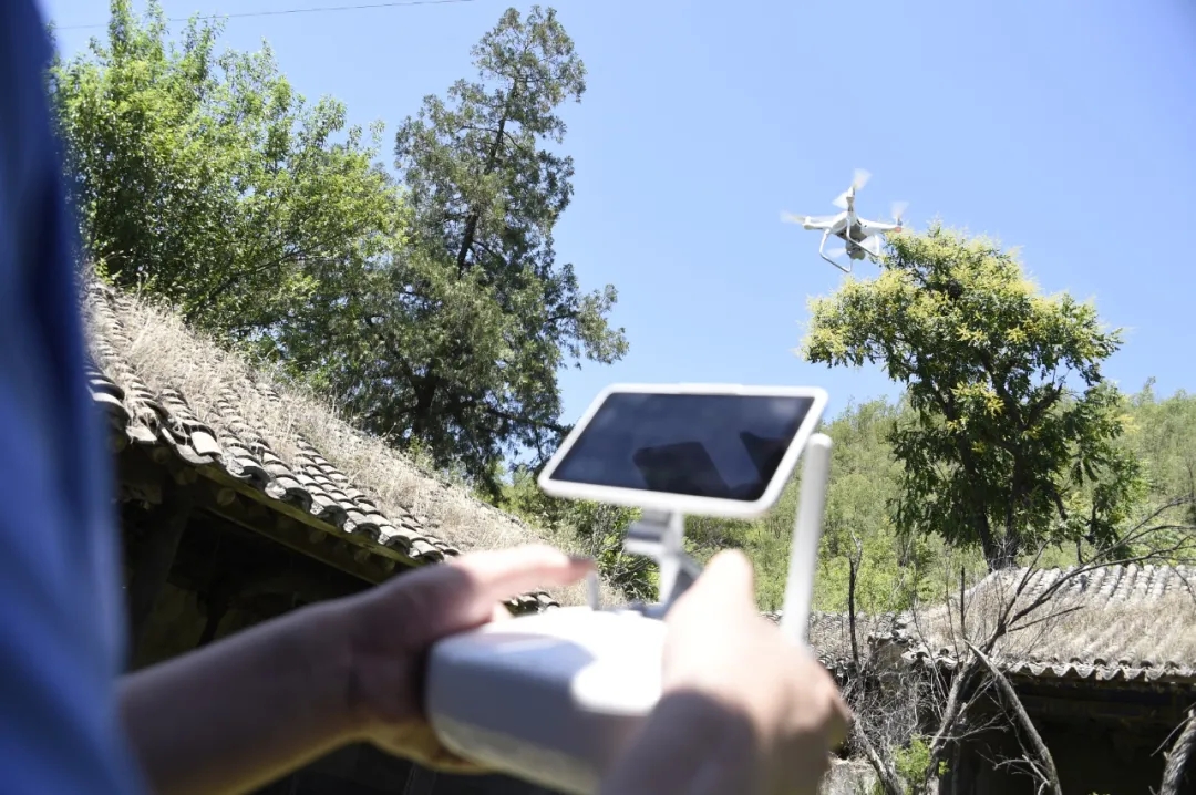 2018年6月4日,北京市门头沟区检察院行政检察部开始了对辖区内所有文保单位的巡查工作。为了将宝峰寺的受损情况摸清,检察干警们启动了无人机,对宝峰寺全景进行勘察。钟心宇 摄