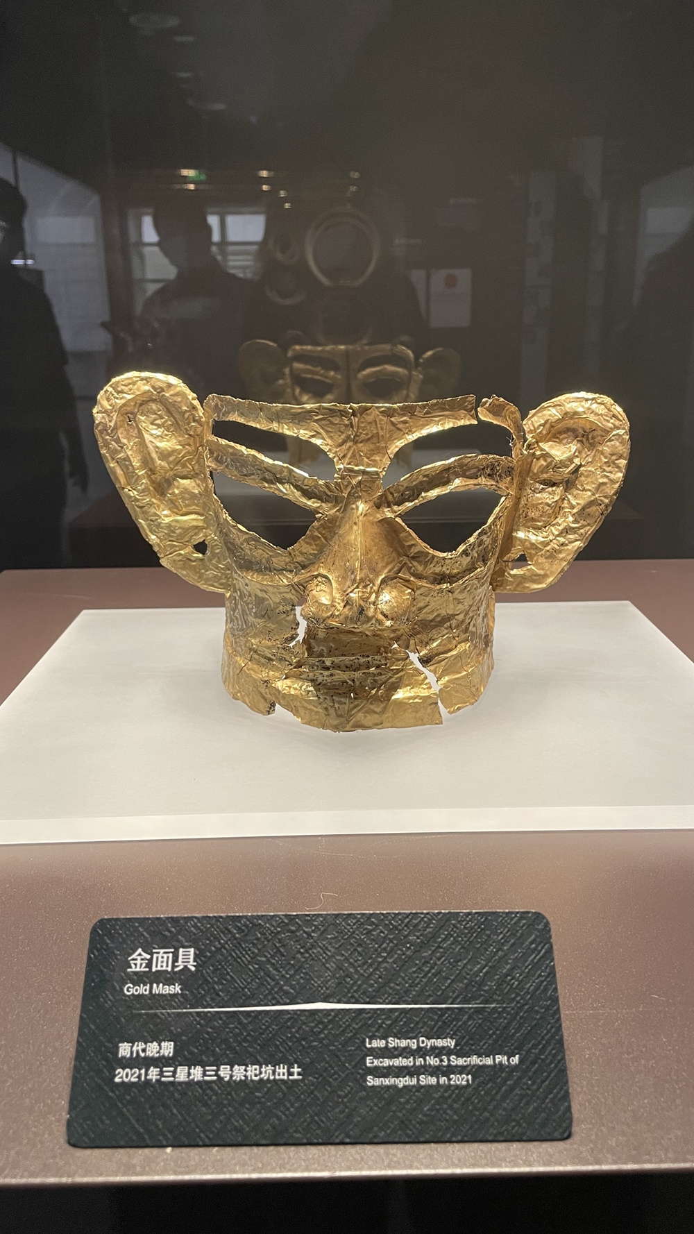 三星堆遗址位于四川省广汉市。图为2021年三星堆遗址三号祭祀坑出土的金面具,年代为商代晚期。国家文物局供图