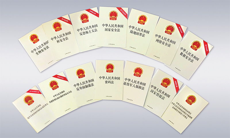 图为党的十八大以来制定出台的部分涉国家安全重要法律法规。这些法律法规的颁布实施,进一步完善了国家安全法治体系,发挥了法治固根本、稳预期、利长远的作用。