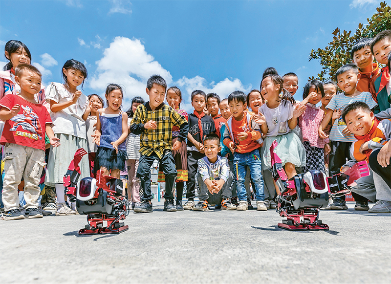 图为2021年9月15日,贵州省科技馆联合黔西市科协、黔西市教育科技局一行,走进乌蒙山区铁石苗族彝族乡铁盔小学,为孩子们带来一场科普盛宴。求是图片 范晖/摄