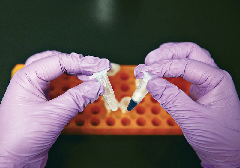 经过不懈努力,我国科学家突破人工合成淀粉技术,在国际上首次实现从二氧化碳到淀粉的从头合成。图为2021年9月16日,在中国科学院天津工业生物技术研究所实验室,科研人员展示人工合成淀粉样品。新华社记者 金立旺/摄