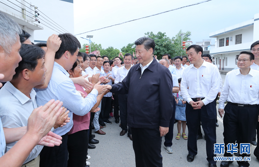 2019年5月20日,中共中央总书记、国家主席、中央军委主席习近平深入赣南老区考察调研。这是习近平来到赣州市于都县梓山镇潭头村亲切看望老区群众。新华社记者 鞠鹏/摄