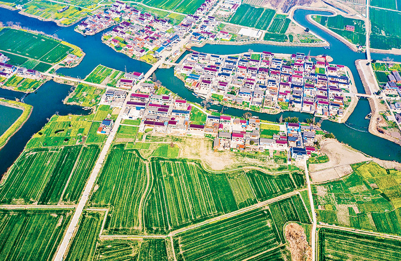 图为2022年3月11日,江苏省海安市南莫镇唐庄村春意盎然,景美如画。求是图片 翟慧勇/摄