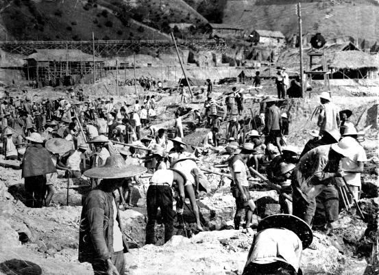 工程建设之初,缺乏机械设备,缺少先进技术支撑,主要靠人力完成。面对艰巨任务,建设者们发出“要高山低头、令河水倒流”的豪迈口号。