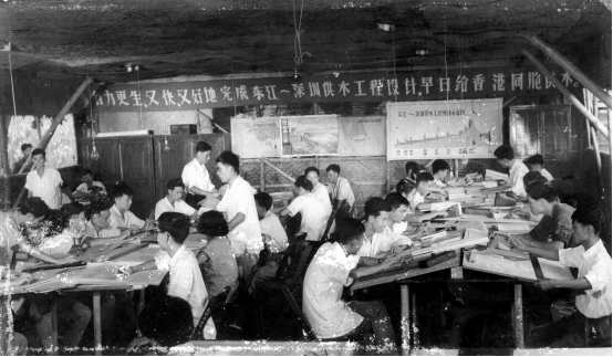 图为东深供水工程技术设计人员工作场景。这一伟大工程奇迹,就是在这样的简易工棚里设计出来的。广东省水利厅供图