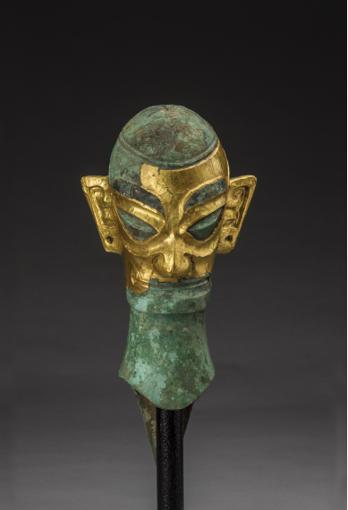 图为商代晚期的戴金面罩青铜人头像。 三星堆博物馆供图