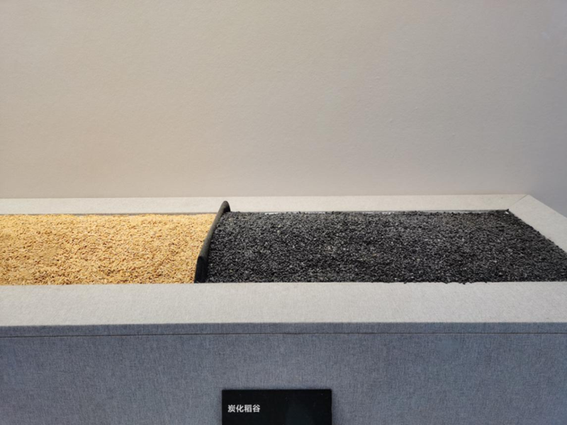 图为炭化稻谷和今日稻谷的对比展示图。良渚博物院供图