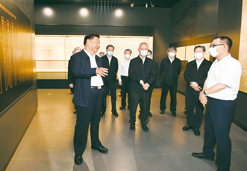 2021年8月23日至24日,中共中央总书记、国家主席、中央军委主席习近平在河北省承德市考察。这是24日上午,习近平在承德博物馆参观《望长城内外——清盛世民族团结实录》展览。新华社记者 谢环驰/摄