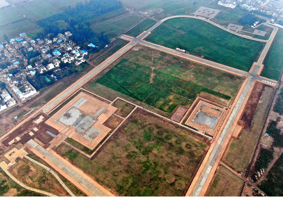 图为2019年10月16日在河南省偃师市拍摄的二里头考古遗址公园(无人机照片)新华社记者 李安/摄