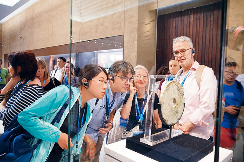 图为2018年9月6日,第四届文化遗产世界大会期间国际专家学者参观良渚博物院。良渚博物院供图