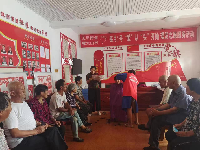 板大山村每月1日理发志愿服务活动。