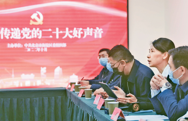图为2022年10月27日上午,北京市海淀区“党代表传递党的二十大好声音”系列活动在北京市党员教育现场教学点——中关村村史馆正式启动。 人民视觉 袁艺/摄