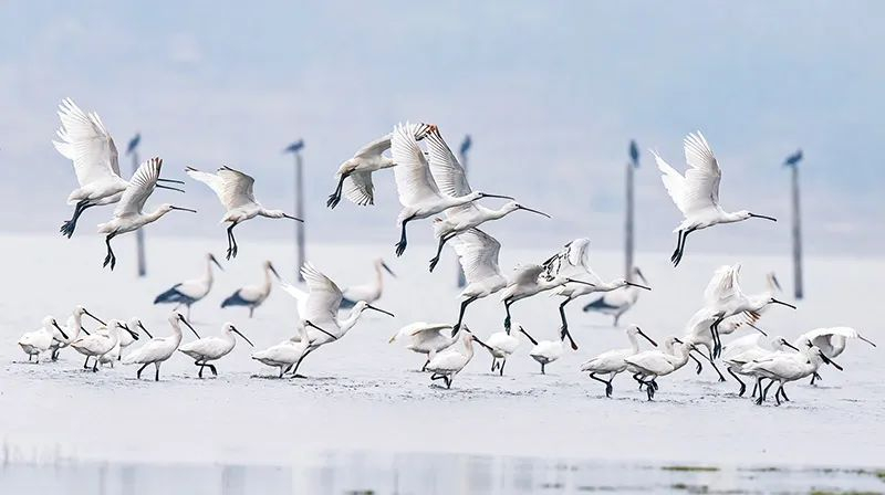 近年来,江西省九江市湖口县持续加大财政对生态环境保护的投入力度,推进湿地修复与生物多样性保护工作,生态环境不断得到改善,为鸟类提供了良好的繁衍生存空间。图为2023年2月7日,成群越冬候鸟在鄱阳湖江西省九江市湖口县湿地嬉戏。人民图片 张玉/摄