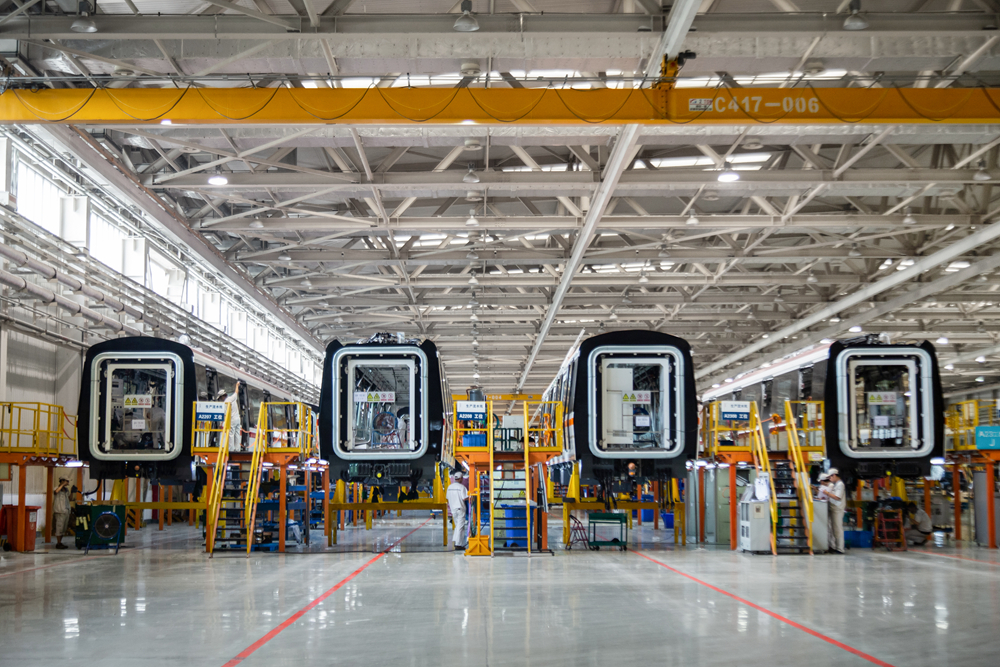 中车南京浦镇车辆有限公司总装分厂车间的工人在作业。