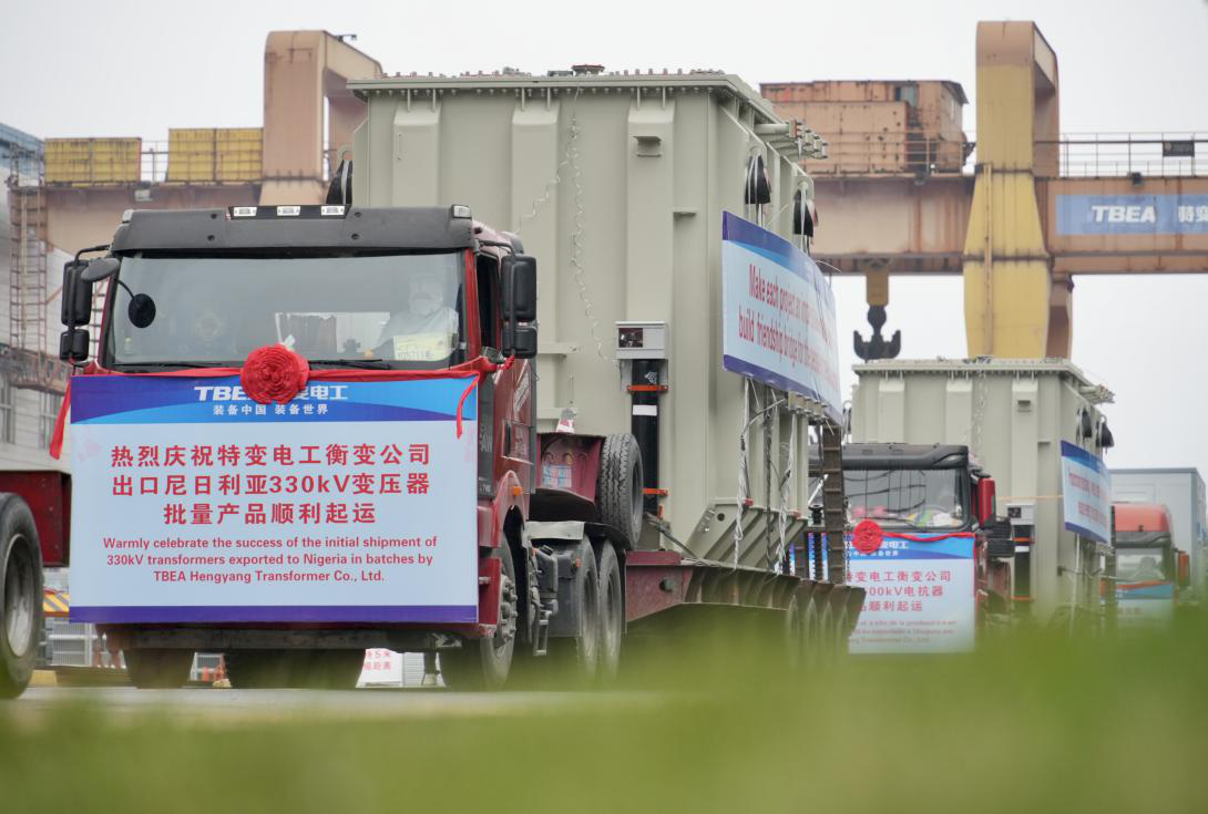 2022年11月29日,价值3.8亿元人民币的76台套变压器装备从衡变公司出厂,踏上远赴非洲、拉美及中亚地区的万里征程。衡变公司供图