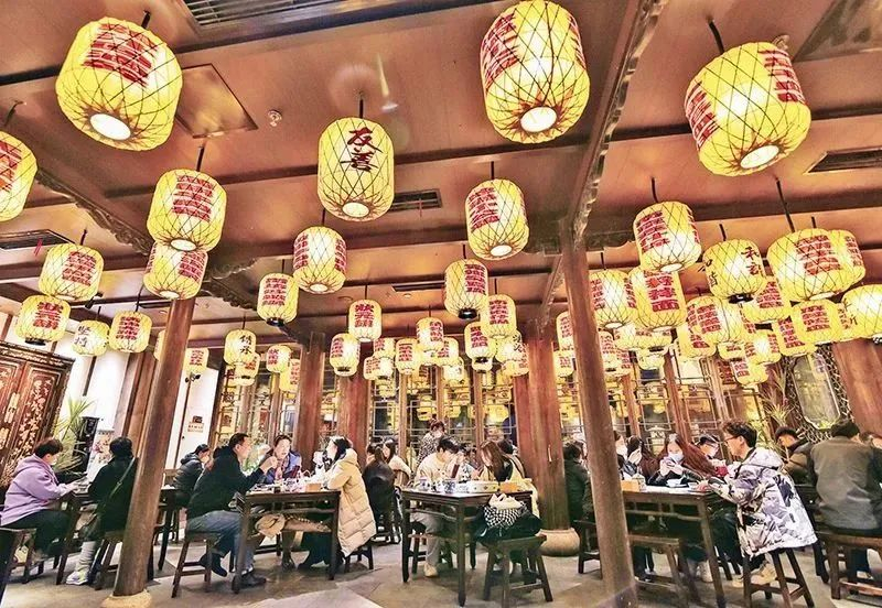 图为2023年1月31日,游客在南京市老门东景区一家餐厅品尝金陵风味美食。新华社发 方东旭/摄