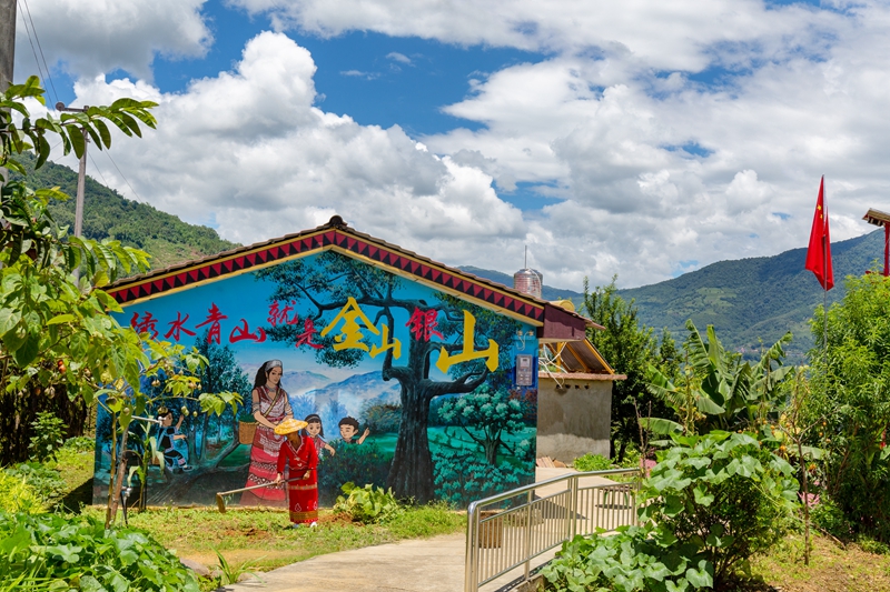 “看看现在的村子,”鲍艾保激动地说:“文化活动室、文化活动广场、球场、水冲式旅游公厕、太阳能路灯、观景台都建得好好的,家家户户有花、有果、有树、有菜,是个美丽的村子呢。”说话间,又一群游人来到观景台,在写着“一寨观两国、远眺金三角、遥望公明山”的“国门”下拍照留念,呼朋引伴的欢笑声盖过了老支书的声音……