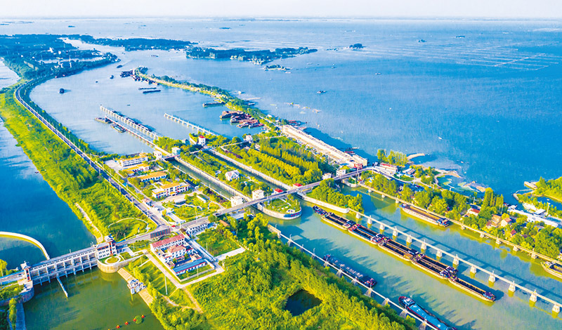 交通是经济的脉络和文明的纽带。图为2023年8月20日,货船行驶在京杭大运河江苏宿迁皂河段。人民图片 徐瑞/摄