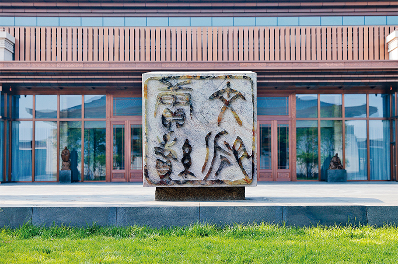 建设中国国家版本馆,是以习近平同志为核心的党中央作出的重大决策,是文明大国建设的基础工程,是功在当代、利在千秋的标志性文化工程,充分体现了我们党传承发展中华文化的高度自觉、汲取历史智慧更好走向未来的历史主动。图为中国国家版本馆中央总馆一块篆刻着“赓续文脉”的寿山石。 中新社记者 韩海丹/摄