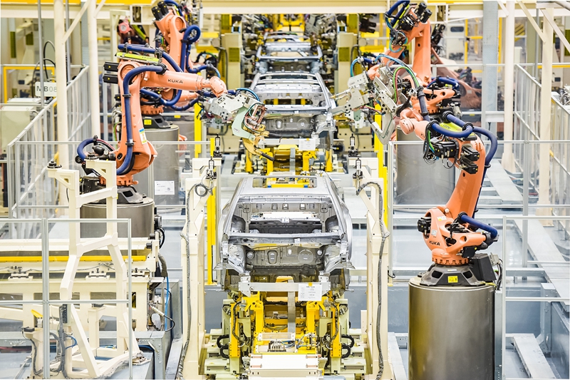 图为广汽埃安第一智造中心焊装车间正在热火朝天地生产。广汽埃安新能源汽车股份有限公司供图