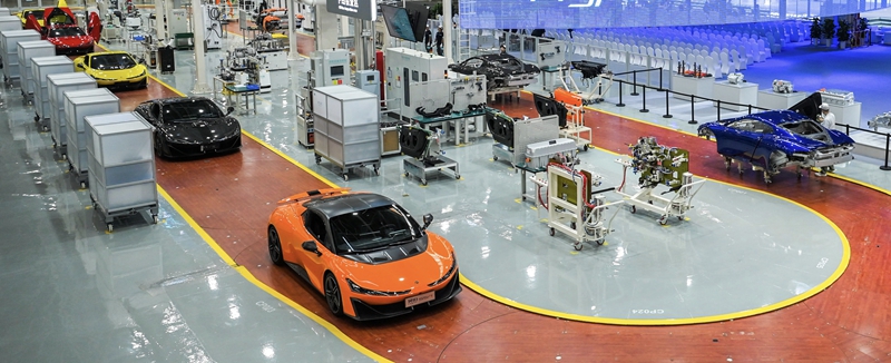 图为广汽埃安智能生态工厂“超跑总装线”生产的汽车。广汽埃安新能源汽车股份有限公司供图