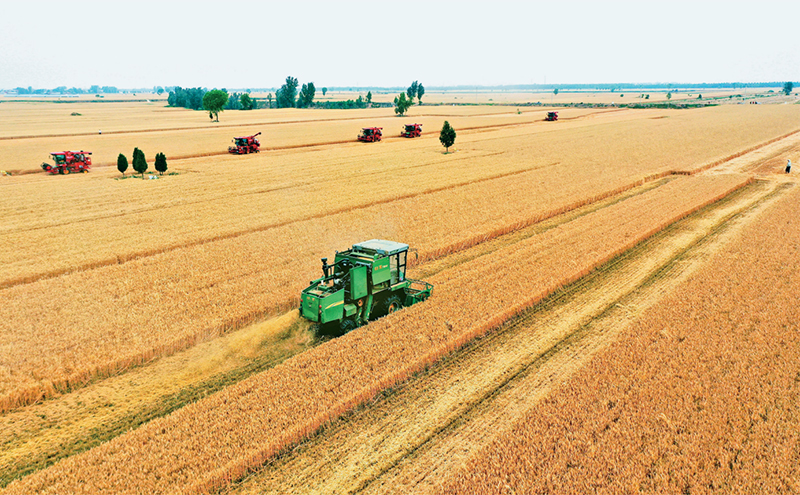 2024年全国夏粮总产量14978万吨(2996亿斤),比上年增加362.7万吨(72.5亿斤),增长2.5%,全国夏粮获得丰收。图为2024年6月4日,在河北省邢台市南和区胡佃村,农机手驾驶收割机开展小麦收割作业。新华社记者 王晓/摄