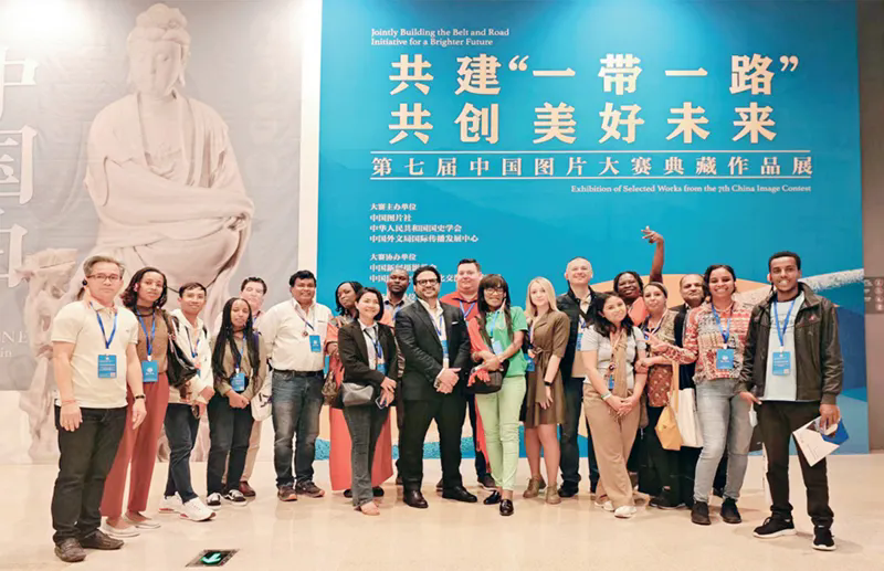 2024年4月19日至29日,第三期“一带一路”法治合作研修项目在北京举行。研修项目开设中国外交、中国法律制度、和平解决国际争端、国际投资法等课程,来自巴基斯坦、埃塞俄比亚、老挝等多国法律官员参加。图为学员参观国家博物馆“共建‘一带一路’ 共创美好未来——第七届中国图片大赛典藏作品展”。 外交部供图