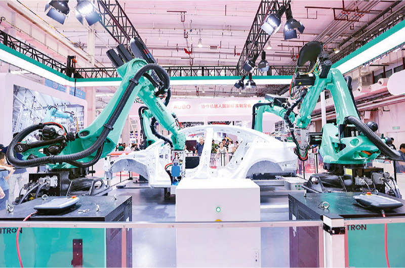 随着信息化、工业化不断融合,以机器人科技为代表的智能产业蓬勃兴起,成为现时代科技创新的一个重要标志。一路前行,我国机器人产业从小到大、从大到强,以空前的广度和深度融入人们的生产生活。如今,我国已经成为全球最大的机器人市场和生产国。图为2024年8月22日,在北京举办的2024世界机器人大会上,机器人正在进行汽车四机点焊作业展示。 人民图片 陈晓根/摄