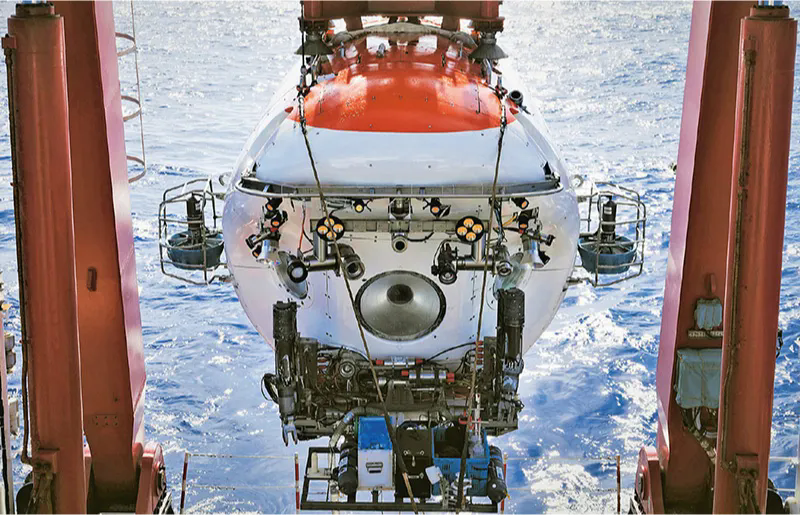 图为2024年9月11日,“蛟龙号”结束下潜返回“深海一号”船后甲板。当日,“蛟龙号”载人潜水器在维嘉海山完成2024西太平洋国际航次科考最后一个潜次下潜作业。科考期间,“蛟龙号”在西太平洋海域完成了18次下潜作业,搭载十余名中外科学家探索深海。新华社记者 王聿昊/摄