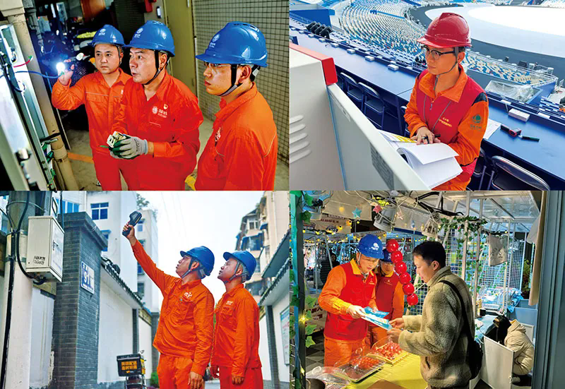 “时代楷模”国网四川电力成都高新连心桥党员服务队是以共产党员为骨干、依托基层一线班组站所组建的先锋团队。图为高新连心桥党员服务队队员日常工作场景的拼图。四川省委宣传部供图