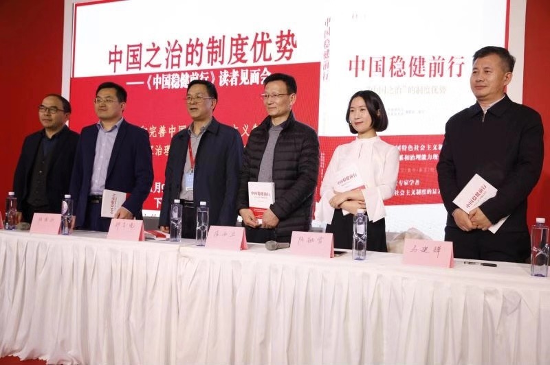 为深入学习宣传党的十九届四中全会精神,进一步揭示“中国之治”的制度优势,1月9日,由求是网、红旗出版社联合主办的“《中国稳健前行》读者见面会”在北京图书订货会“新书会客厅”举行。