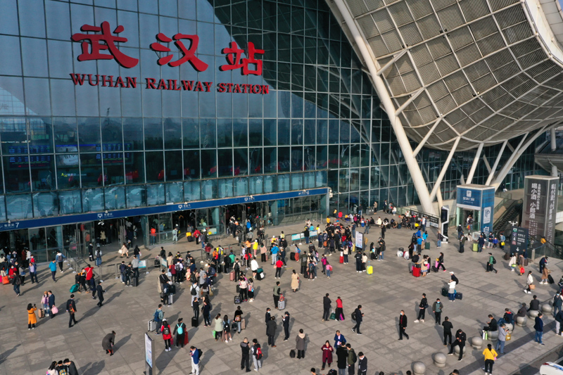 旅客在武汉火车站东广场准备进站乘车(10月8日摄,无人机照片)。新华社发(赵军摄)