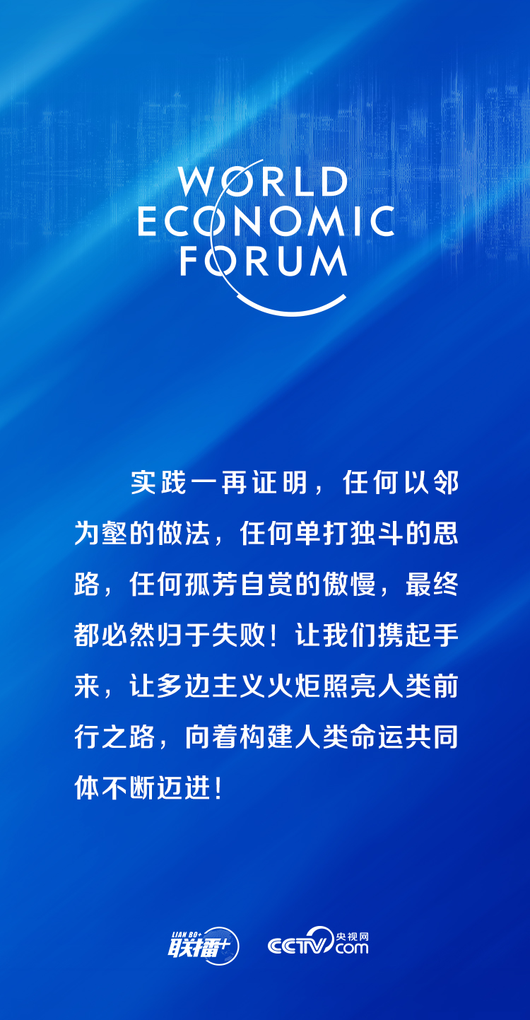 在致辞中,习近平主席深刻分析国际形势,指出这个时代面临的四大课题,并就深化各领域合作、维护和践行多边主义、构建更加紧密的人类命运共同体提出一系列倡议主张,为推动世界经济持续健康稳定发展注入新动力。