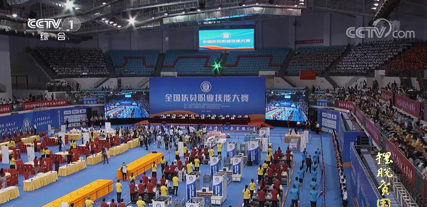 【解说词】赛场上,四百多名选手正在比拼,他们都来自于建档立卡的贫困家庭,技能扶贫,正让他们释放人生的光彩。