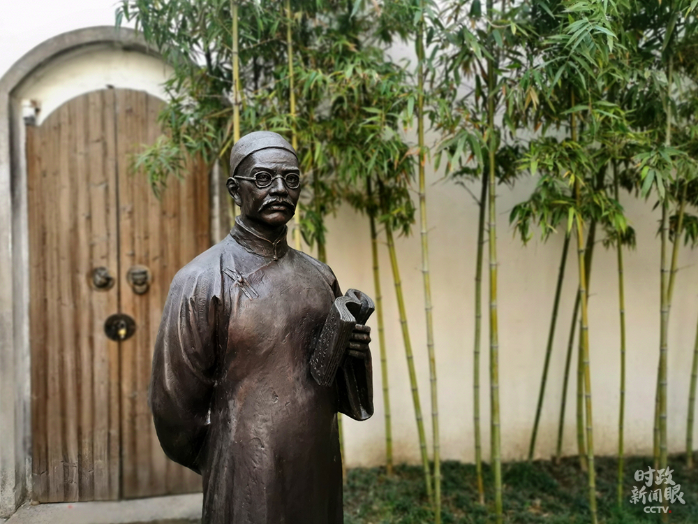 △严复故居中,严复雕像手中所拿的是《天演论》。(总台央视记者张宇、覃思拍摄)