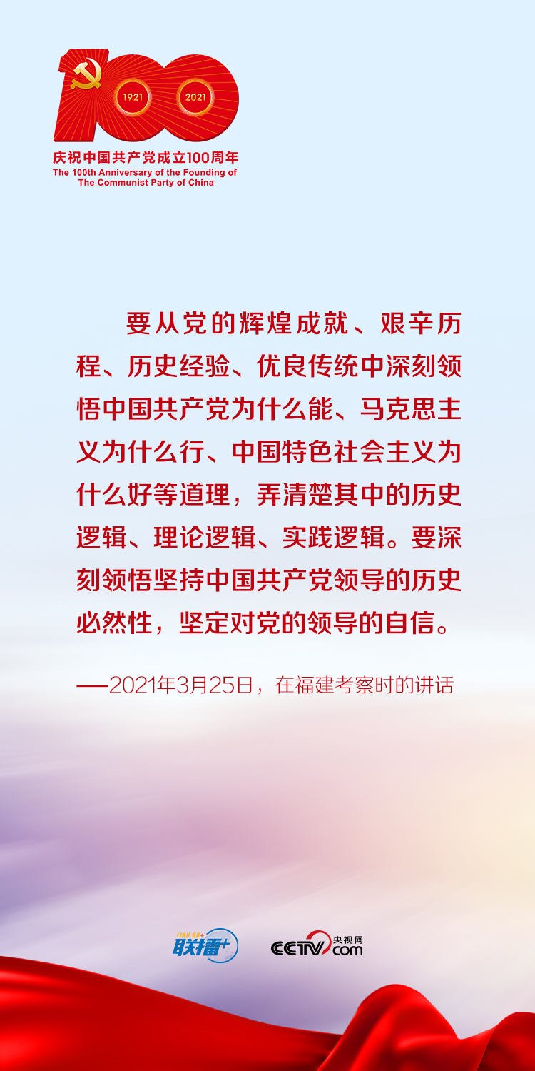今年是中国共产党成立100周年。央视网《联播+》特梳理总书记关于知史爱党的重要论述,与您一起坚定理想信念,不断增强守初心、担使命的思想自觉和行动自觉。