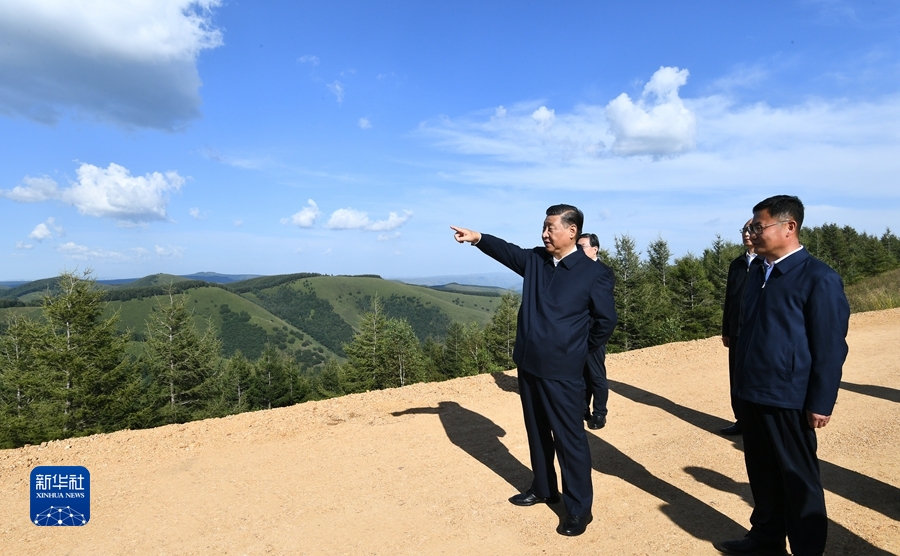8月23日至24日,中共中央总书记、国家主席、中央军委主席习近平在河北省承德市考察。这是23日下午,习近平在塞罕坝机械林场月亮山考察。新华社记者 谢环驰/摄