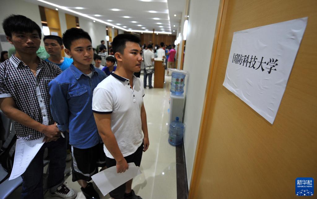 考生在海口国防科技大学面试体检点等待面试(2013年7月2日摄)。新华社记者 郭程 摄