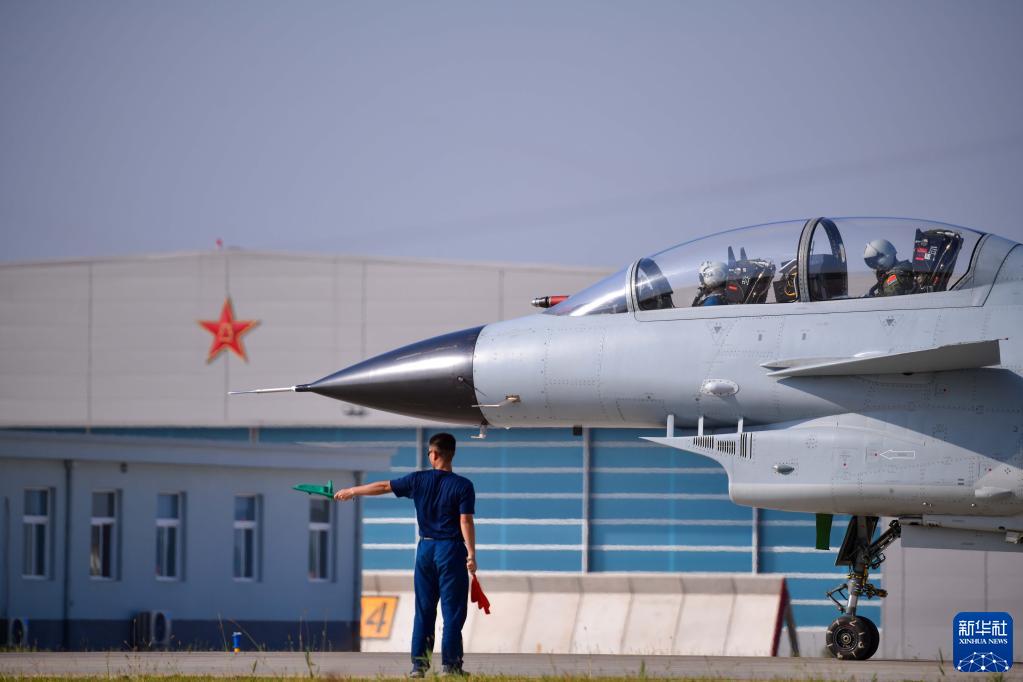 在空军石家庄飞行学院某旅机场,空军首批三代机飞行学员驾驶首批列装空军院校的歼-10战机准备起飞(2021年9月10日摄)。新华社发(李敏 摄)