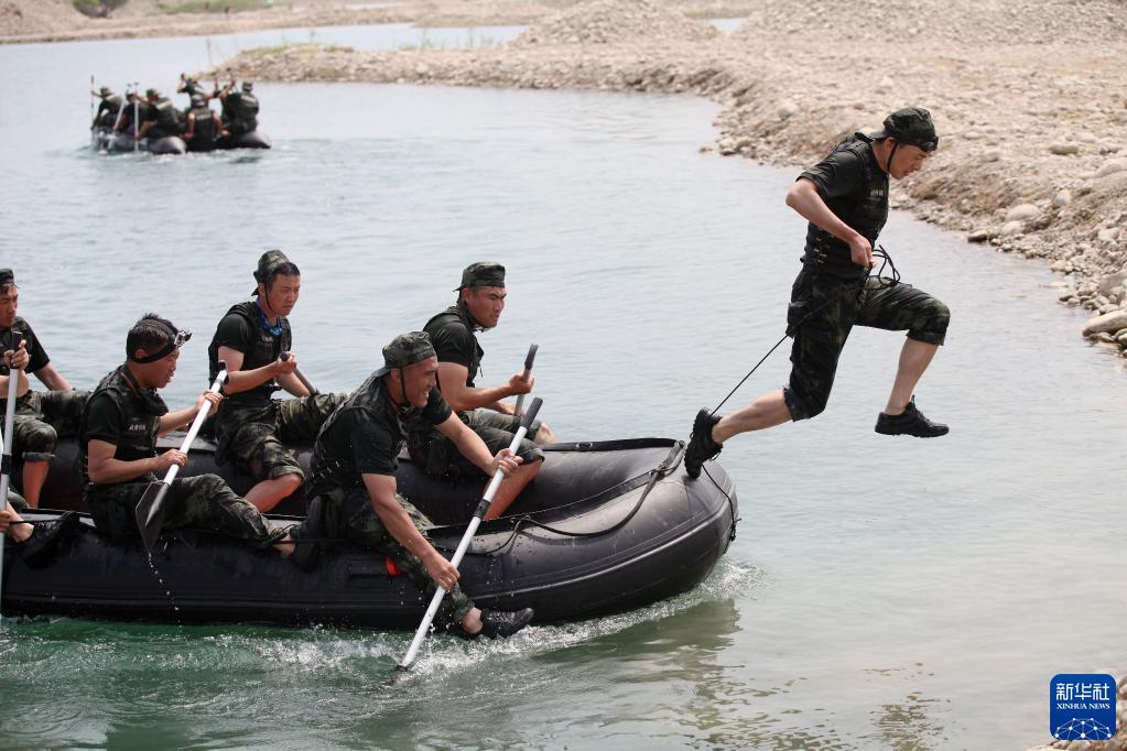 武警猎鹰突击队特战队员在北京某域开展“魔鬼周”水上课目训练(2019年6月22日摄)。新华社发(杨志毅 摄)