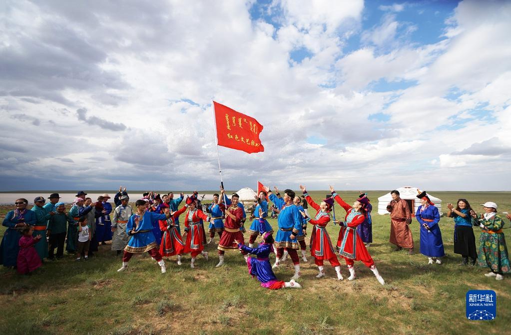2018年8月22日,内蒙古苏尼特右旗乌兰牧骑队员在牧区演出。新华社发(东哈达摄)
