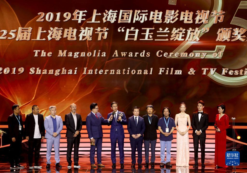 2019年6月14日,第25届上海电视节落下帷幕,获得“最佳中国电视剧”的《大江大河》主创上台领奖。新华社记者 刘颖 摄