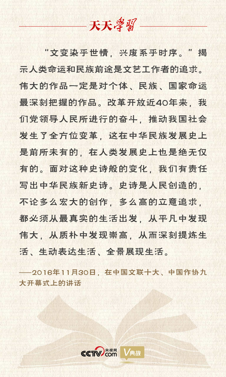 “文章合为时而著,歌诗合为事而作。”反映时代是文艺工作者的使命。长期以来,广大文艺工作者心怀祖国人民、响应时代召唤、追求艺术理想,每到重大历史关头,都能感国运之变化、立时代之潮头、发时代之先声,为亿万人民、为伟大祖国鼓与呼。