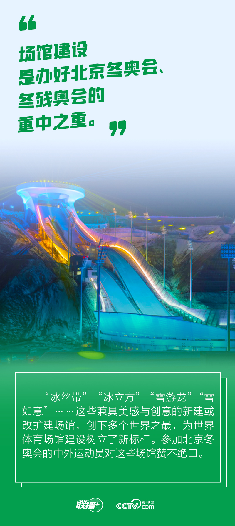 在筹办阶段,总书记始终关注并践行“精彩办赛”之诺。他说:“我们不仅要办好一届冬奥盛会,而且要办出特色、办出精彩、办出独一无二来。”