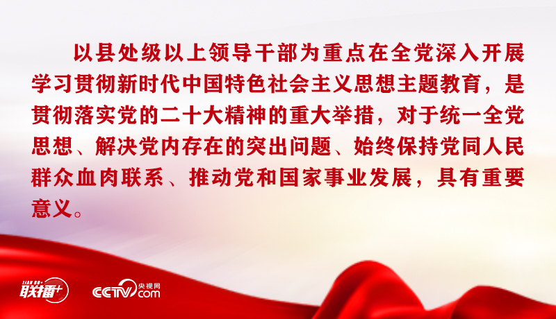 总书记强调,我们要以这次主题教育为契机,加强党的创新理论武装,不断提高全党马克思主义水平,不断提高党的执政能力和领导水平,为奋进新征程凝心聚力,踔厉奋发、勇毅前行,为全面建设社会主义现代化国家、全面推进中华民族伟大复兴而团结奋斗。