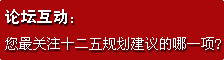 | 梅耶:十二五规划,将“国富”转型到“民富”是立党为公、执政为民的执政理念进步,是发展为了人民、发展依靠人民、发展成果由人民共享的具体体现。令人期待,让人寄予厚望。 |